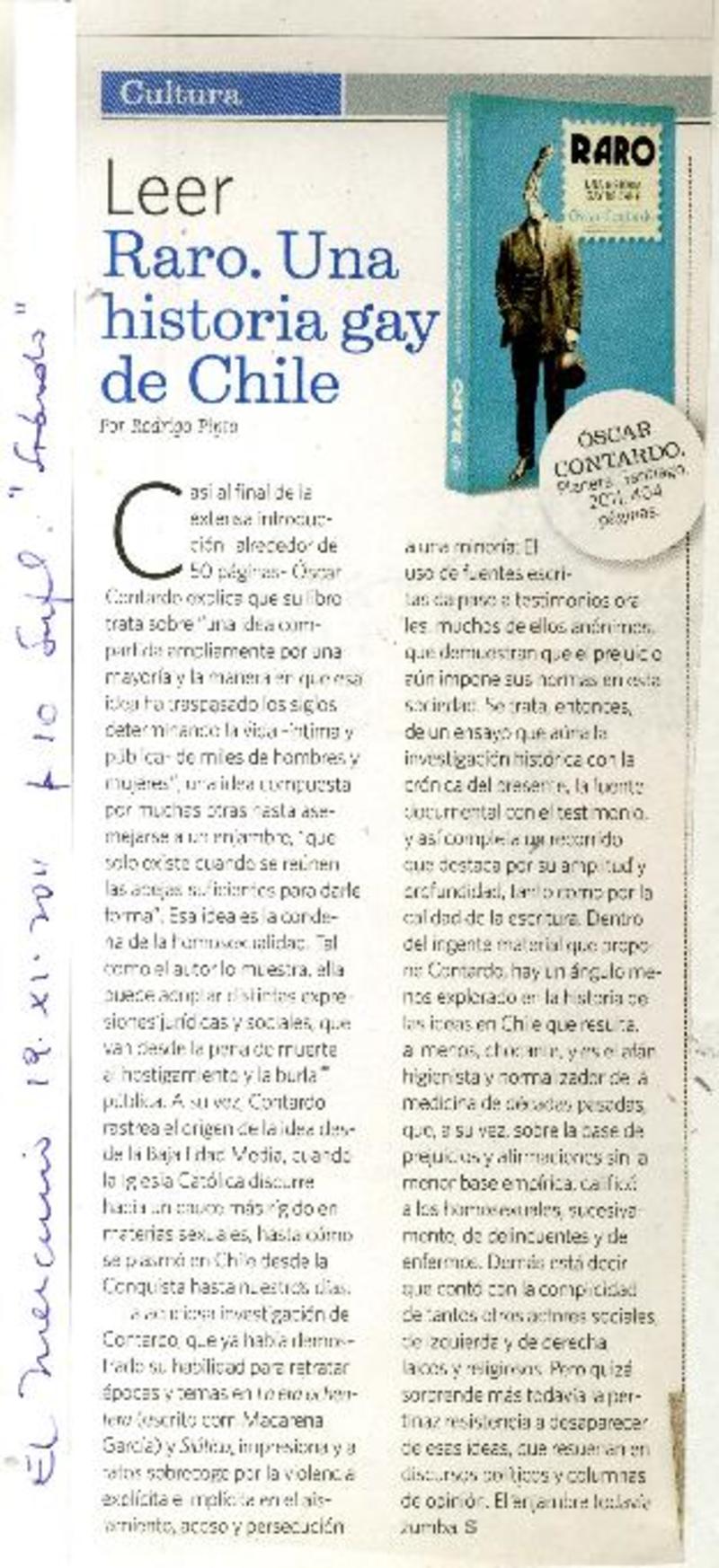 Raro. Una historia gay de Chile. [artículo] Rodrigo Pinto.