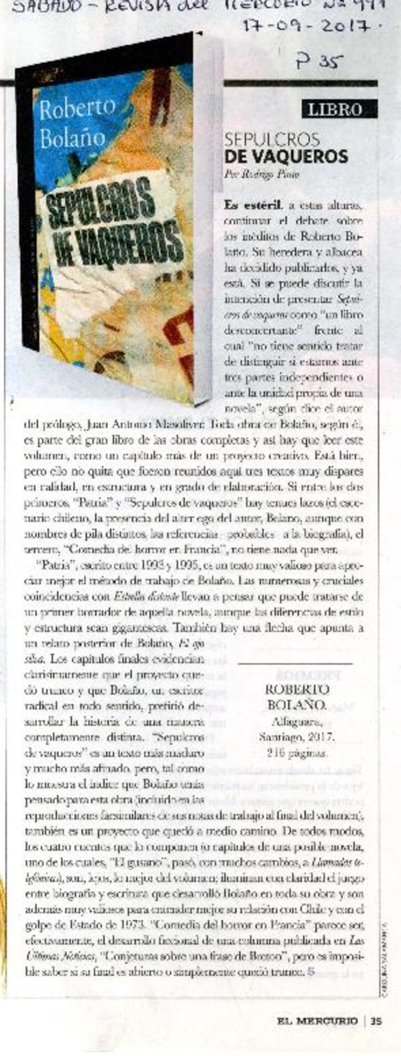 Sepulcros de vaqueros [artículo] Rodrigo Pinto.