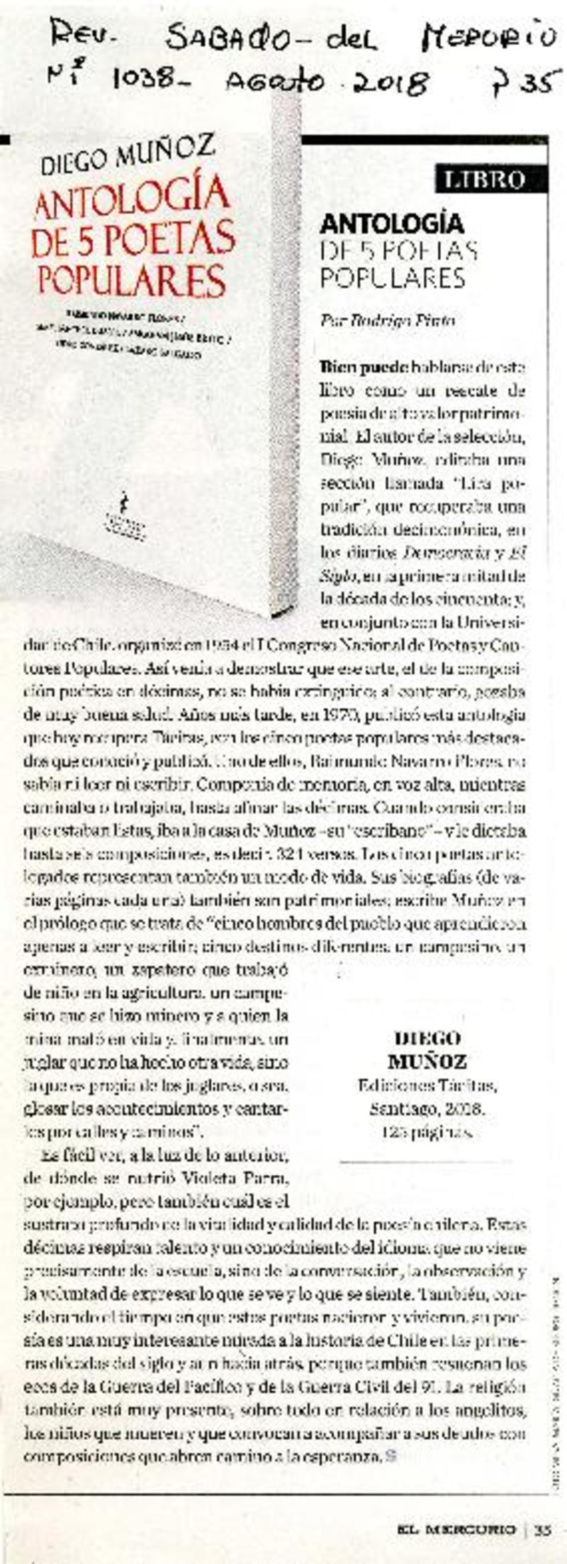 Antología de 5 poetas populares [artículo] Rodrigo Pinto.