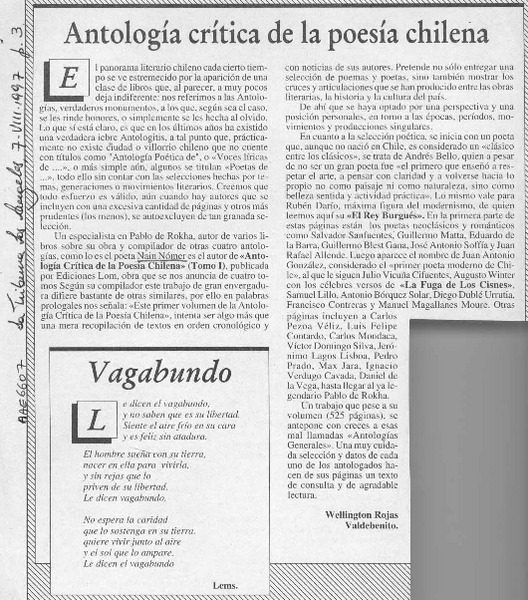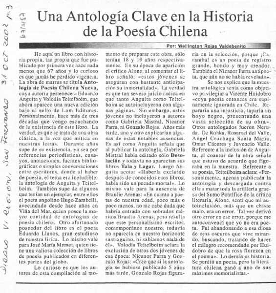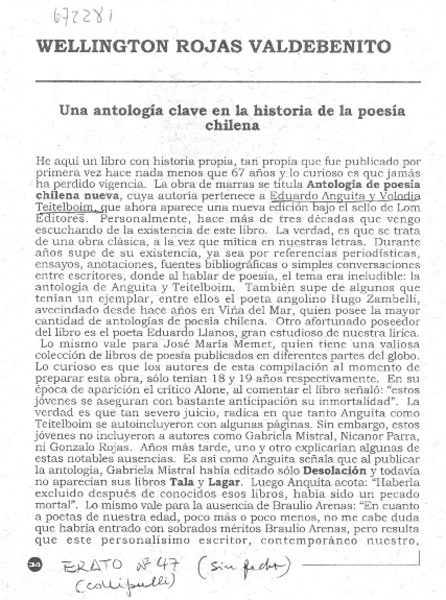 Antología crítica de la poesía chilena [artículo] Wellington Rojas Valdebenito.