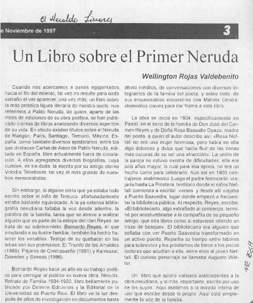 Un libro sobre el primer Neruda [artículo] Wellington Rojas Valdebenito.