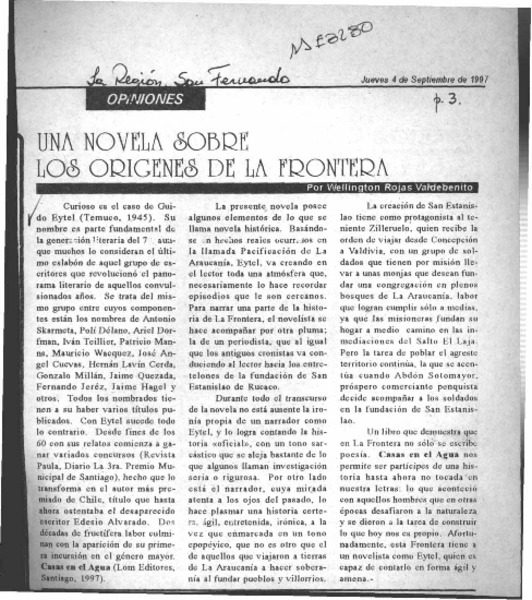 Una novela sobre los orígenes de la frontera [artículo] Wellington Rojas Valdebenito.