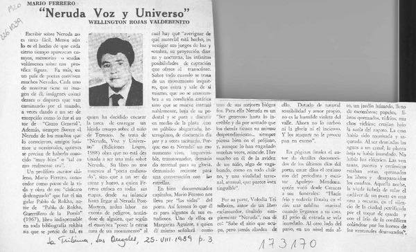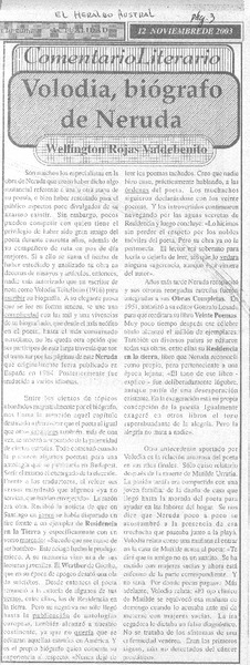 Volodia, biográfo de Neruda [artículo] Wellington Rojas Valdebenito.