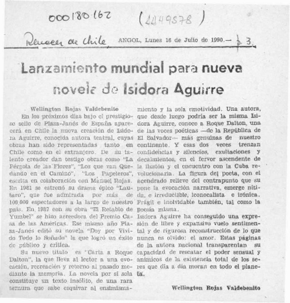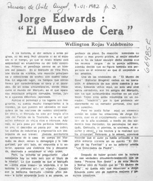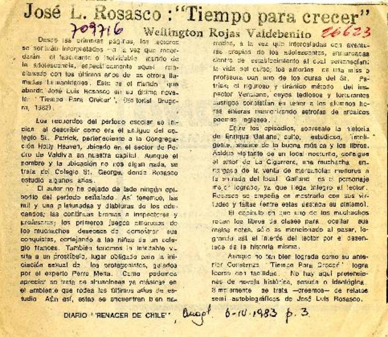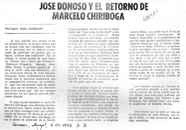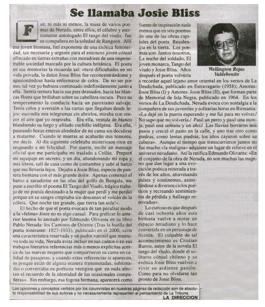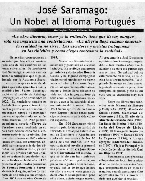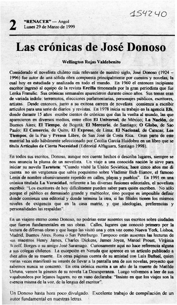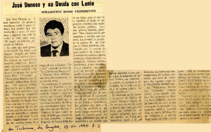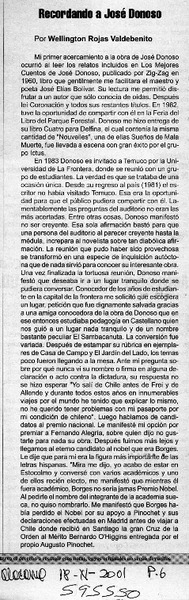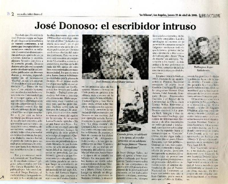 Una novela póstuma de José Donoso [artículo] Wellington Rojas Valdebenito.