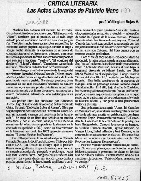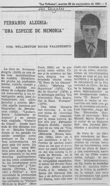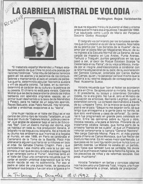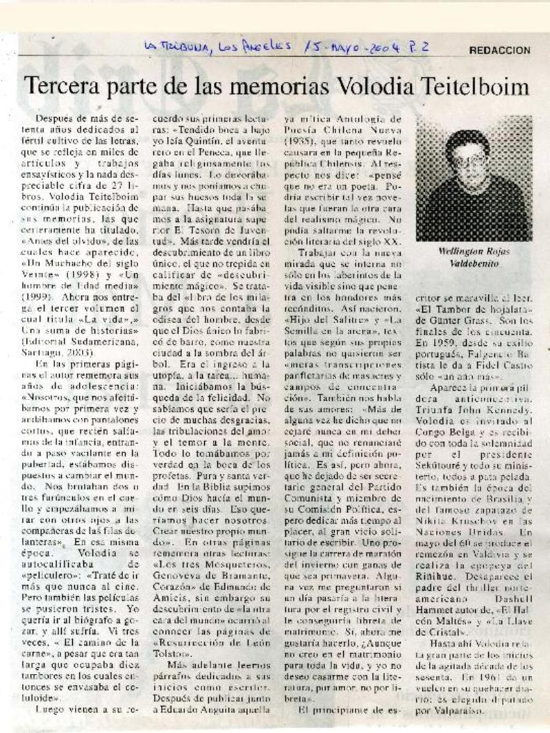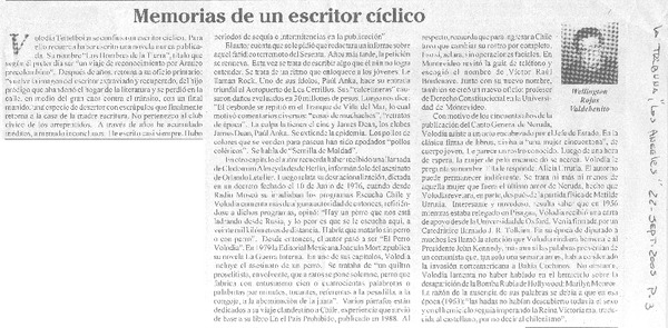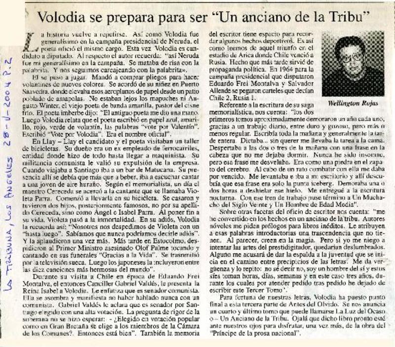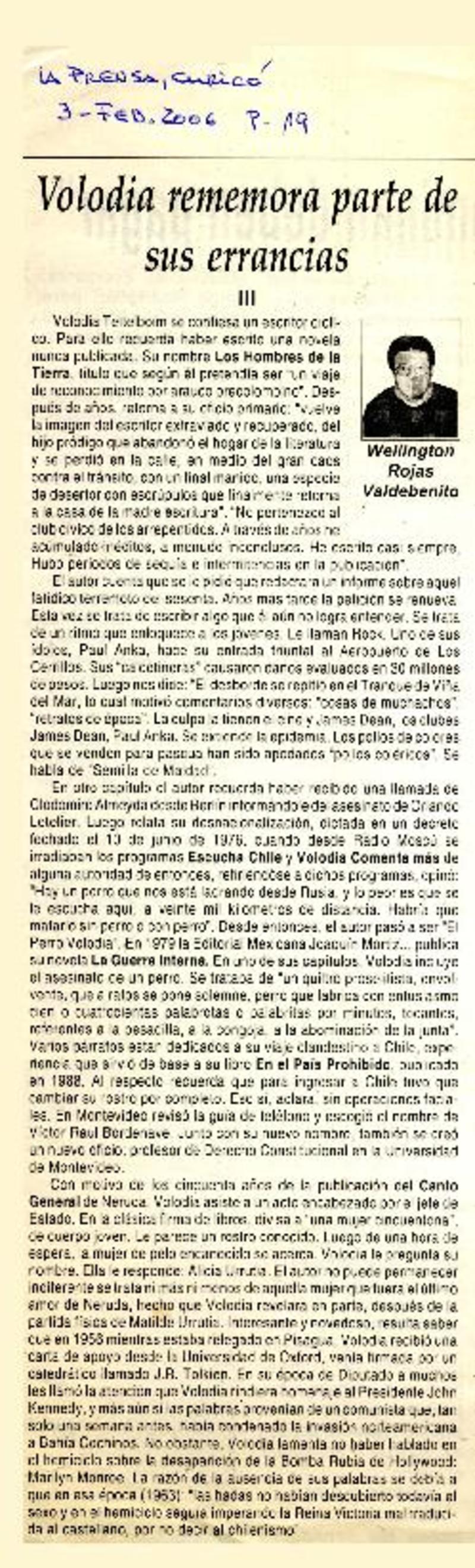Volodia rememora parte de sus errancias [artículo] Wellington Rojas.