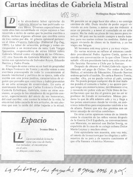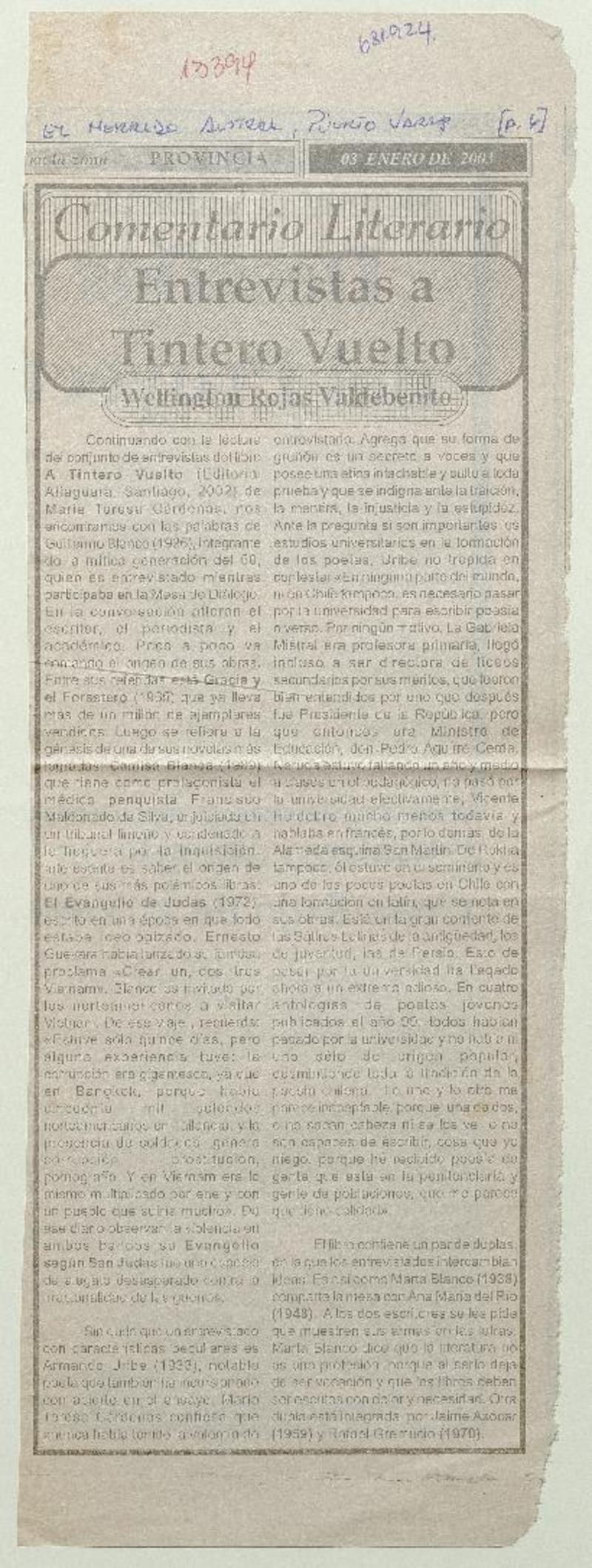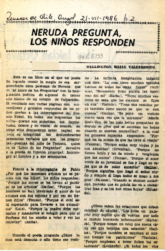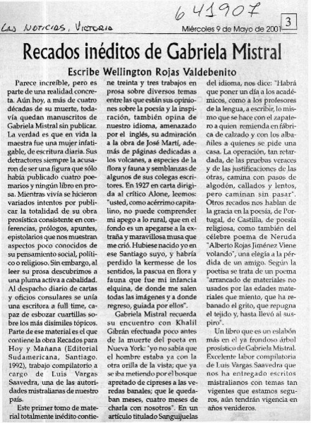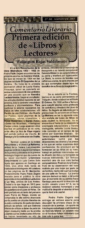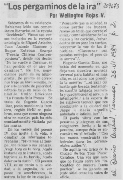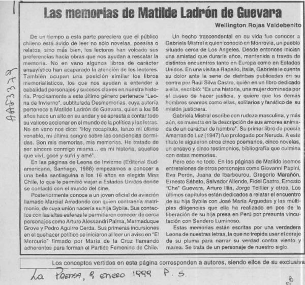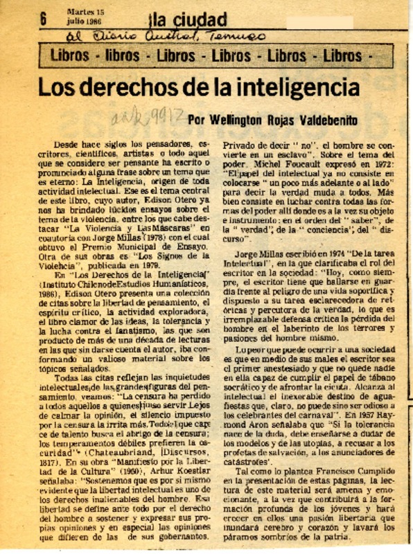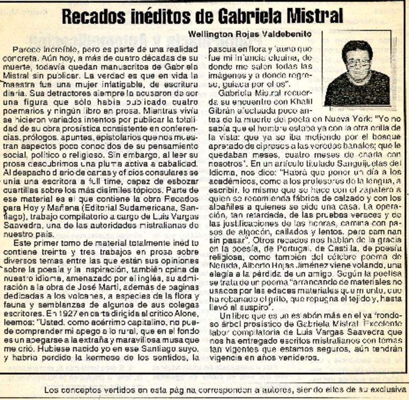 Volodia rememora parte de sus errancias [artículo] Wellington Rojas.