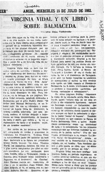 Virginia Vidal y un libro sobre Balmaceda [artículo] Wellington Rojas Valdebenito.