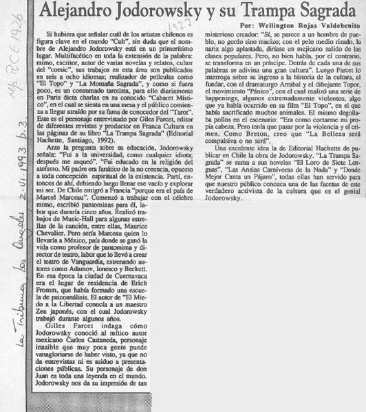 Alejandro Jodorowsky y su trampa sagrada [artículo] Wellington Rojas Valdebenito.