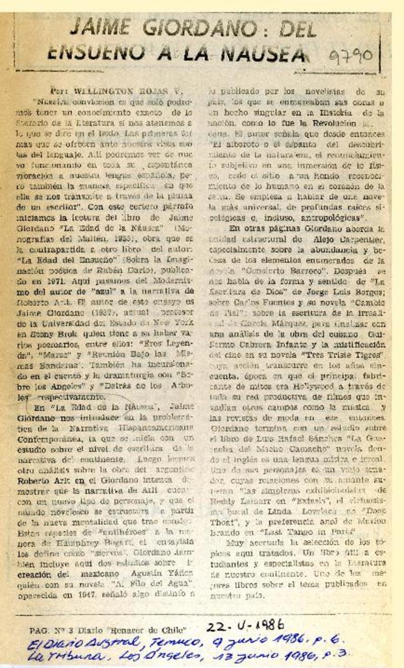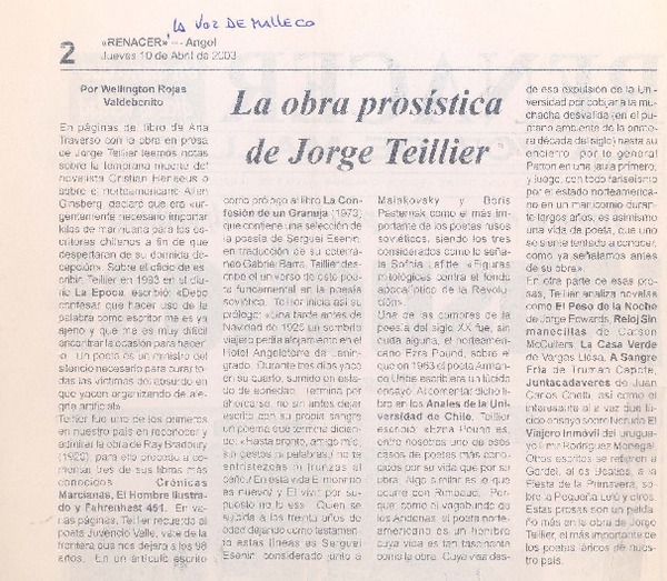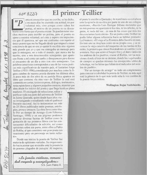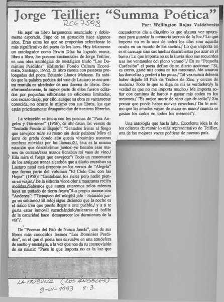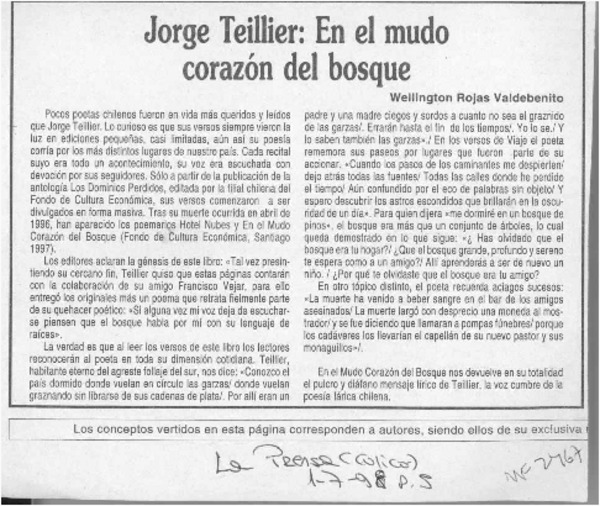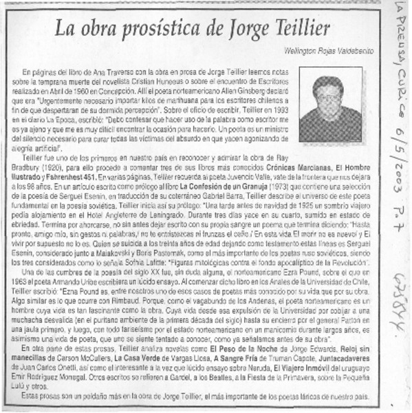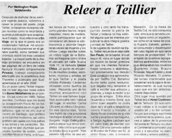 Un libro póstumo de Jorge Teillier [artículo] Wellington Rojas Valdebenito.