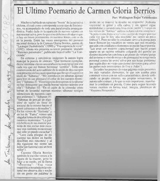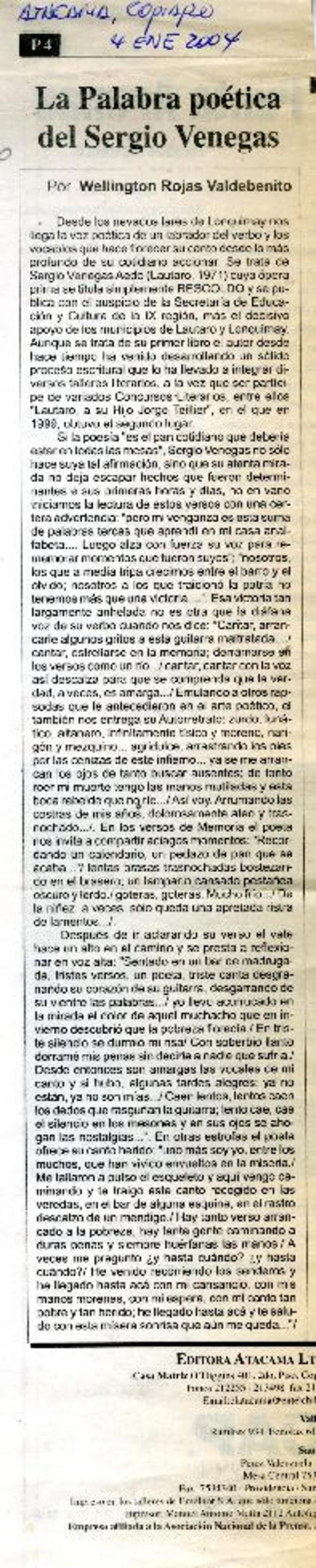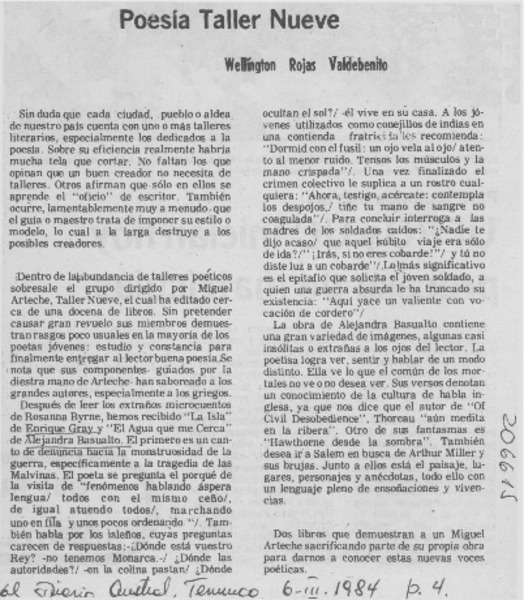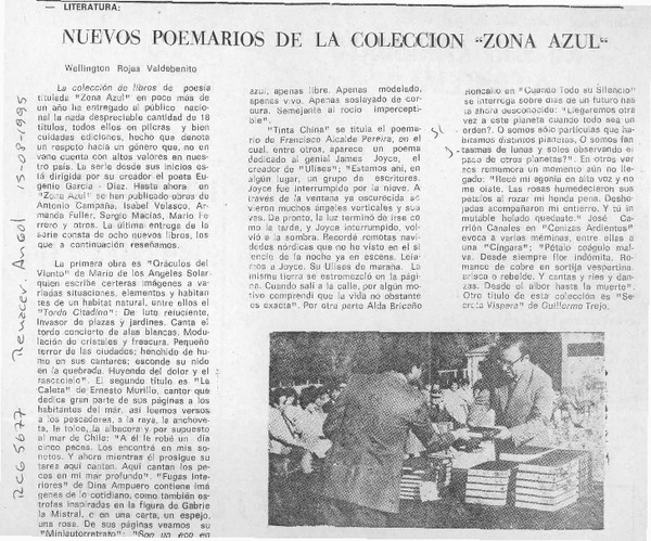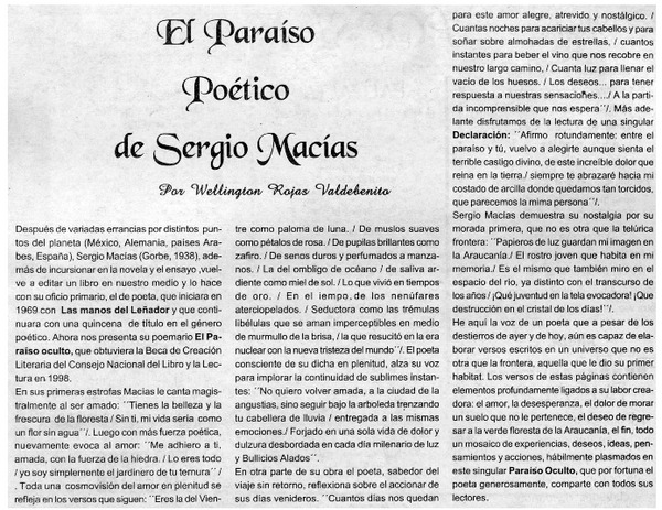 Una nueva colección poética [artículo] Wellington Rojas Valdebenito.