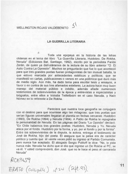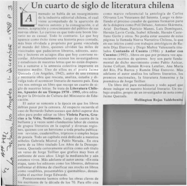 Un cuarto de siglo de literatura chilena [artículo] Wellington Rojas Valdebenito.