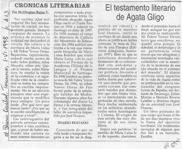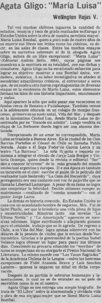 Agata Gligo; María Luisa [artículo] Wellingon Rojas Valdebenito.