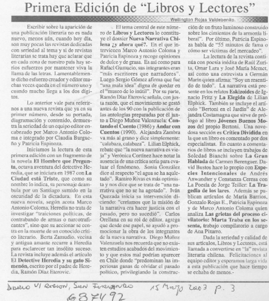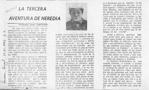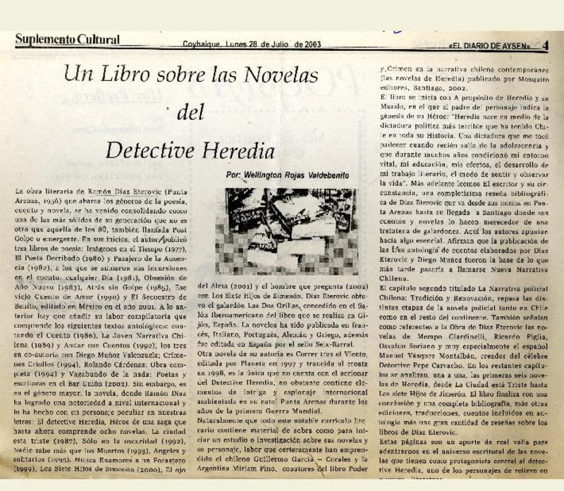 Un libro sobre las novelas del detective Heredia [artículo] Wellington Rojas Valdebenito.