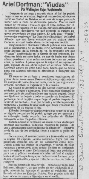 Ariel Dorfman, "Viudas" [artículo] Wellington Rojas Valdebenito.