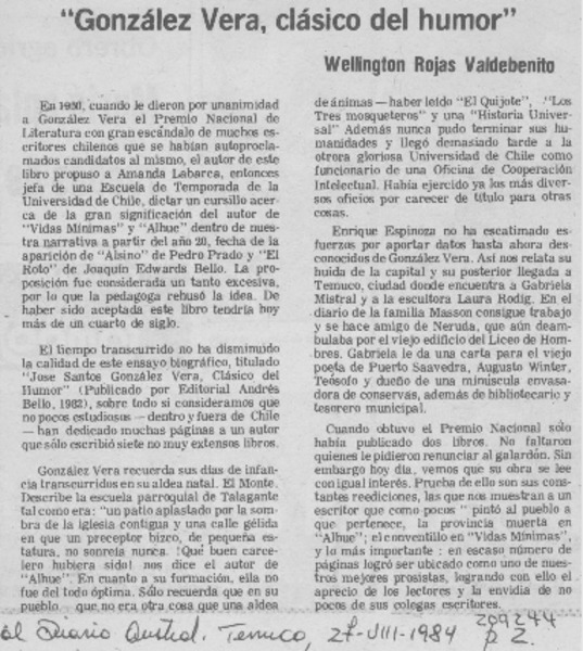 Volodia, príncipe de la prosa nacional [artículo] Wellington Rojas Valdebenito