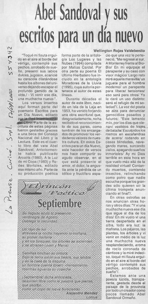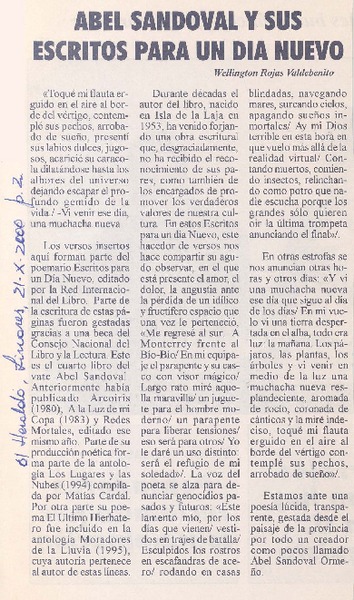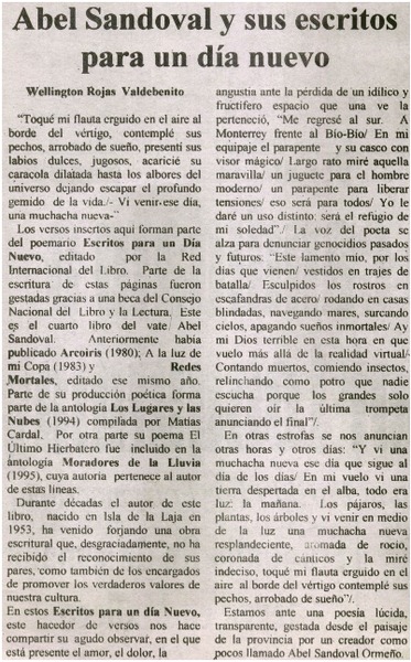 Abel Sanoval y sus escritos para un día nuevo [artículo] Wellington Rojas Valdebenito.