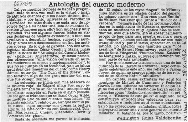 Antología del cuento moderno [artículo] Wellington Rojas Valdebenito.