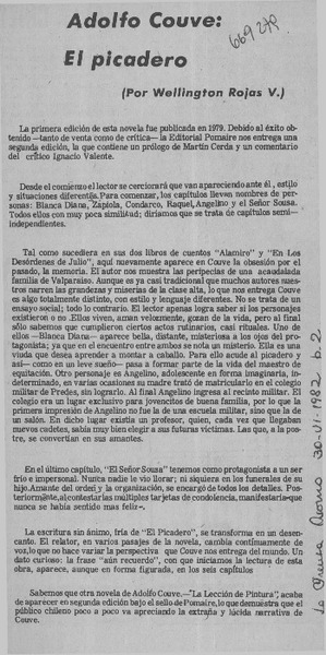 Adolfo Couve, "El picadero" [artículo] Wellington Rojas Valdebenito.