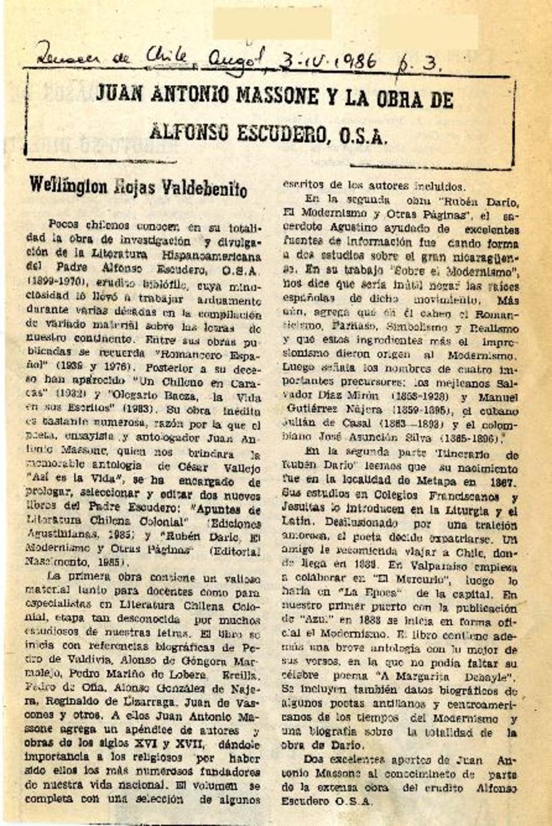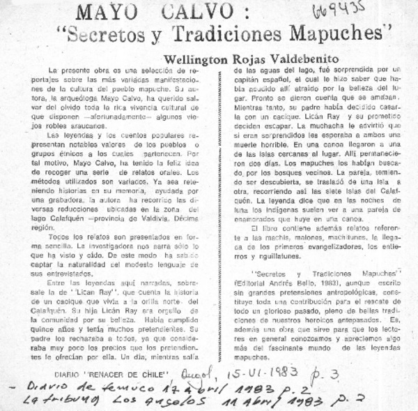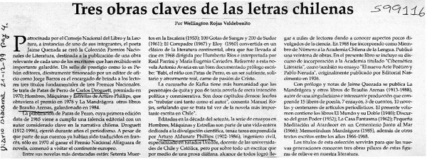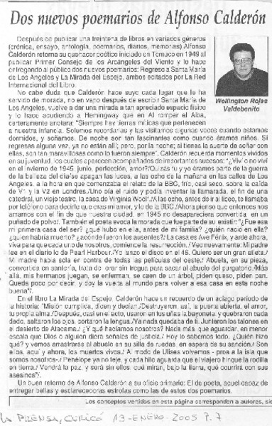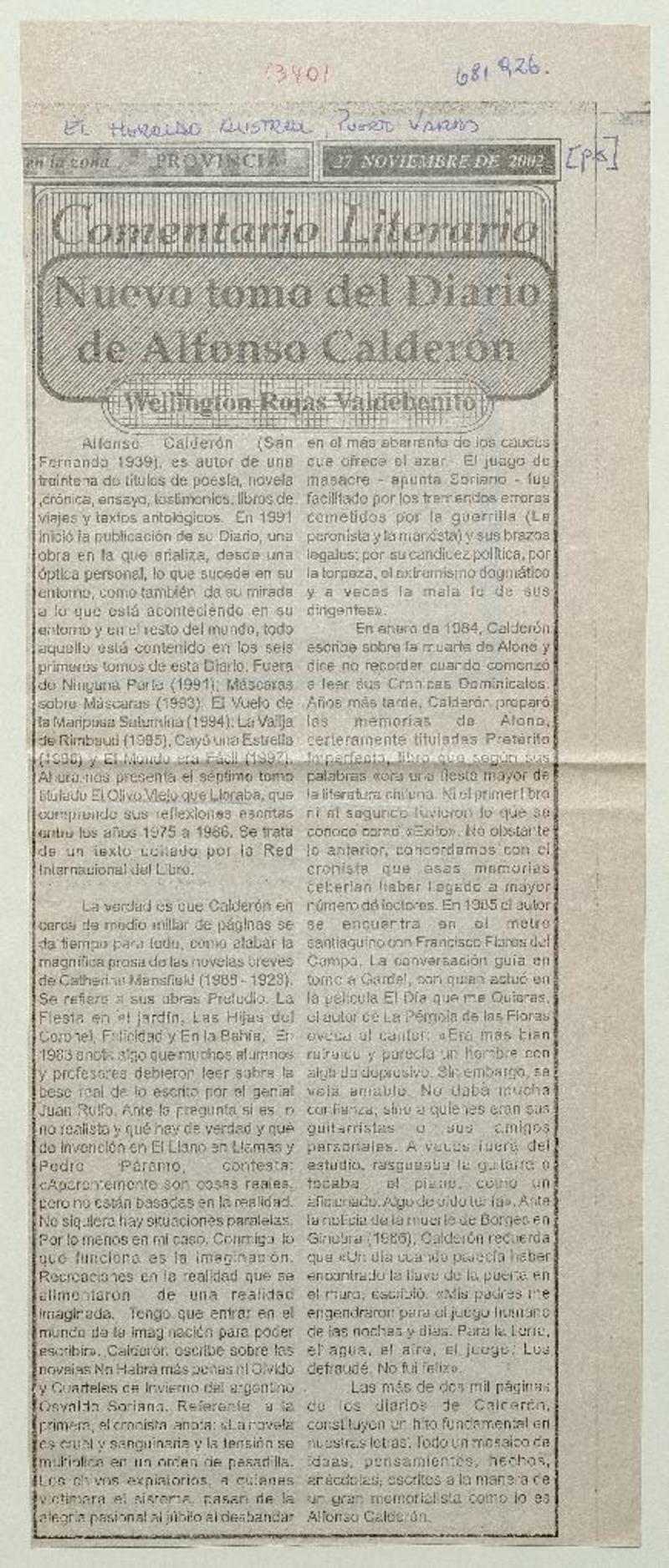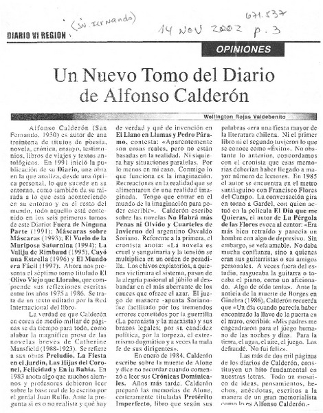 Un nuevo tomo del diario de Alfonso Calderón. [artículo] Wellington Rojas Valdebenito.