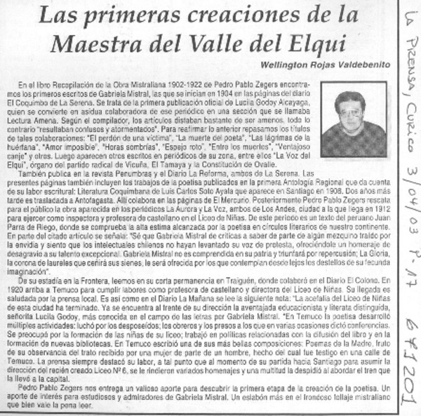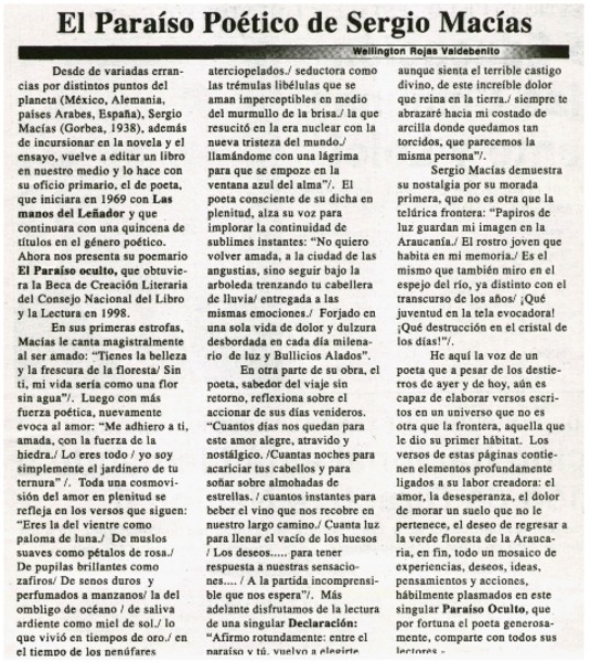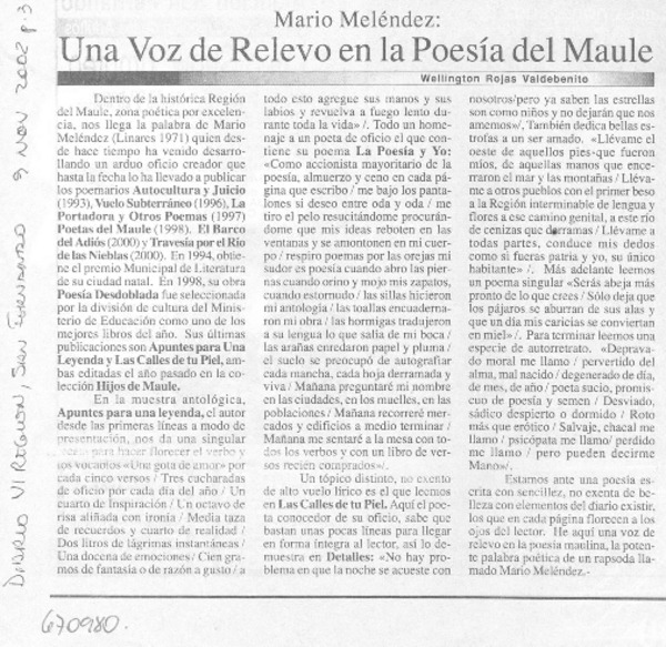Una voz de relevo en la poesía del Maule [artículo] Wellington Rojas Valdebenito.