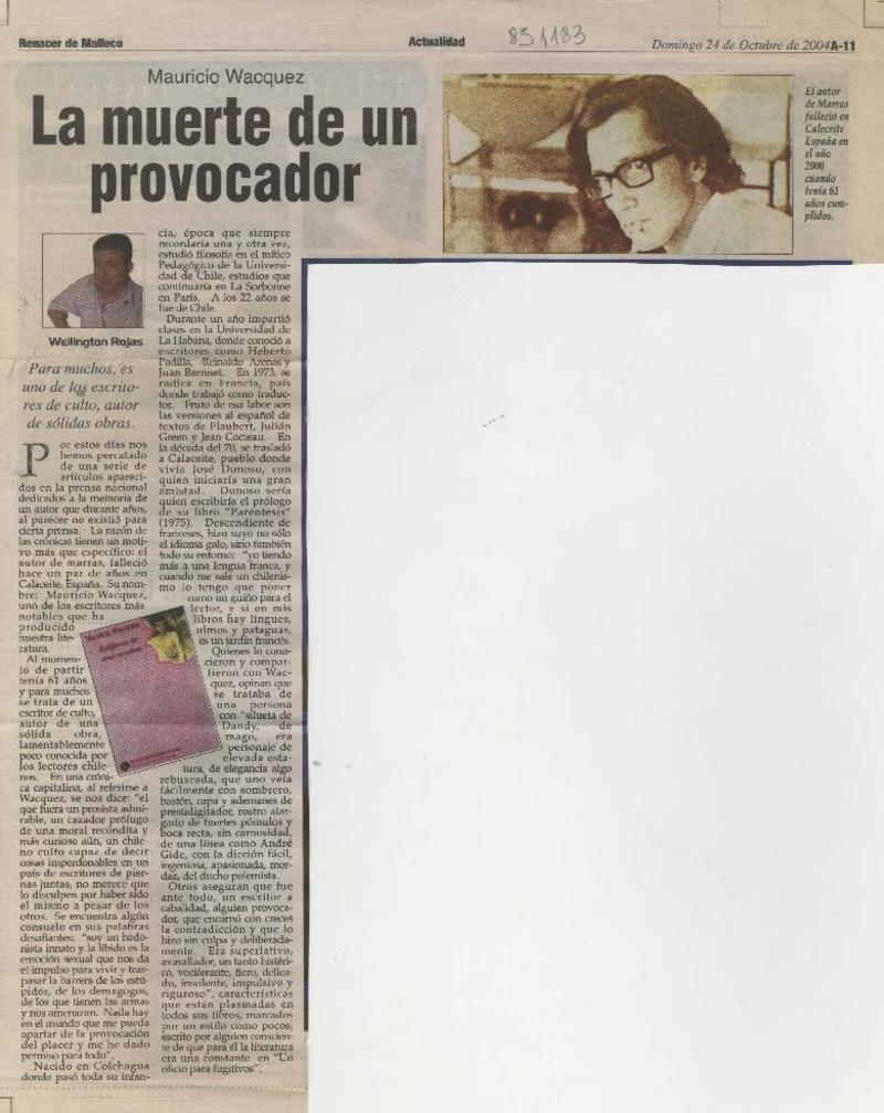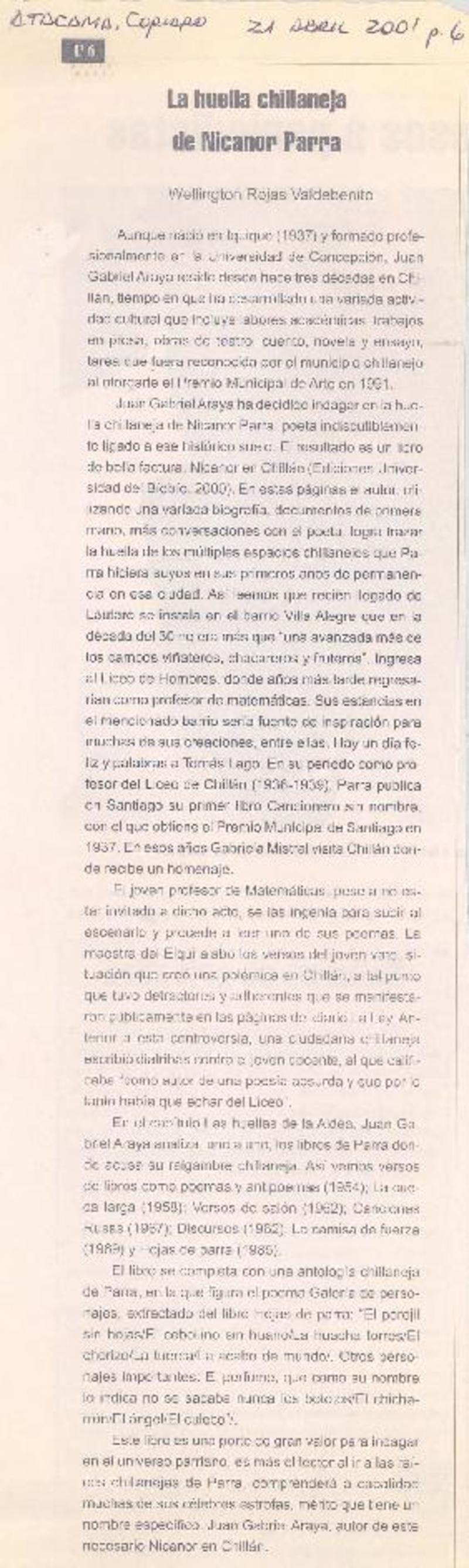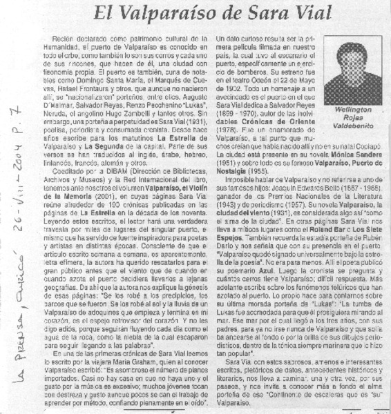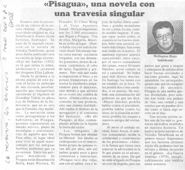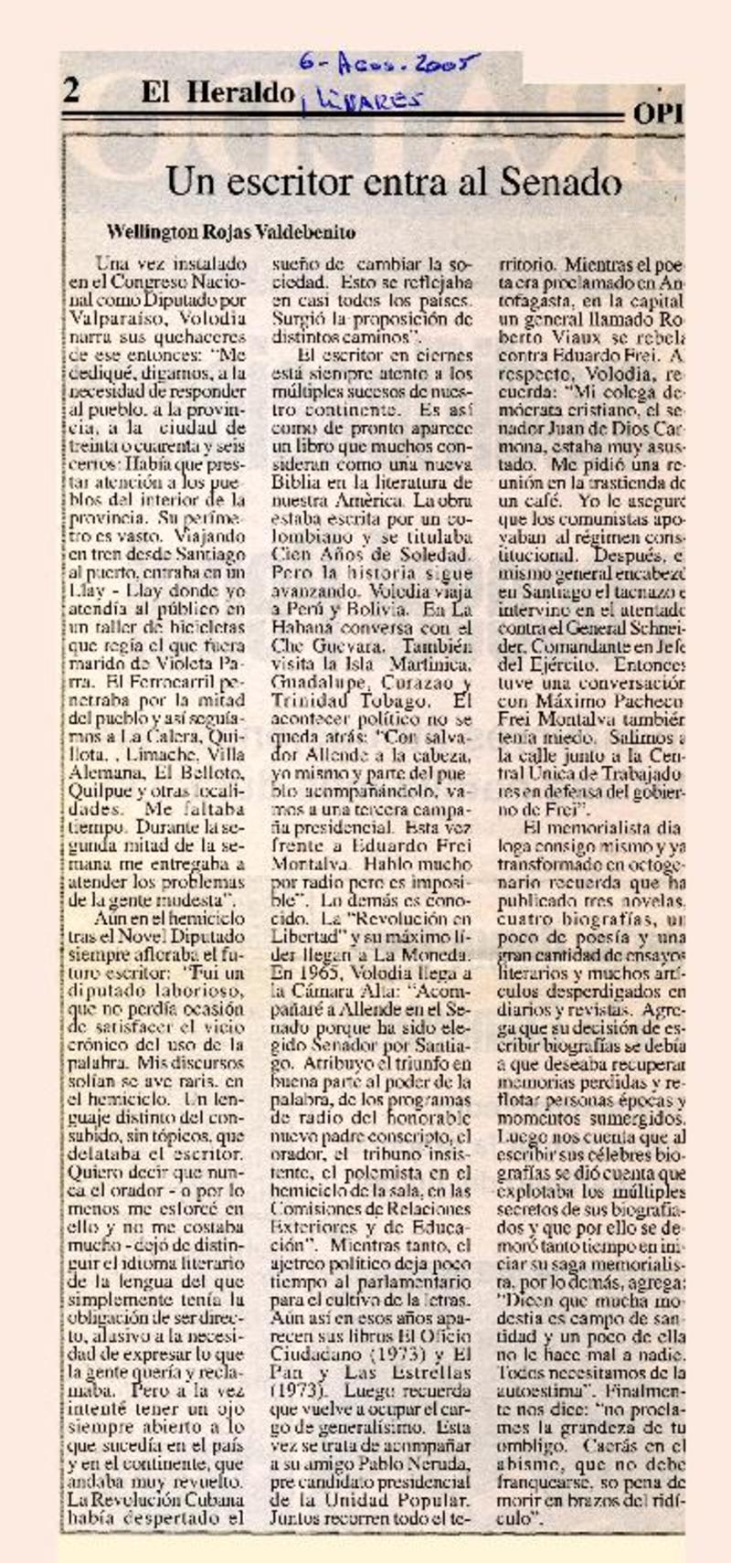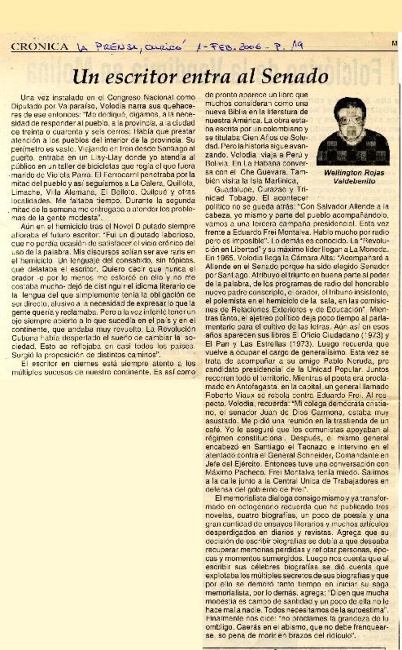 Un escritor entra al Senado [artículo] Wellington Rojas Valdebenito.