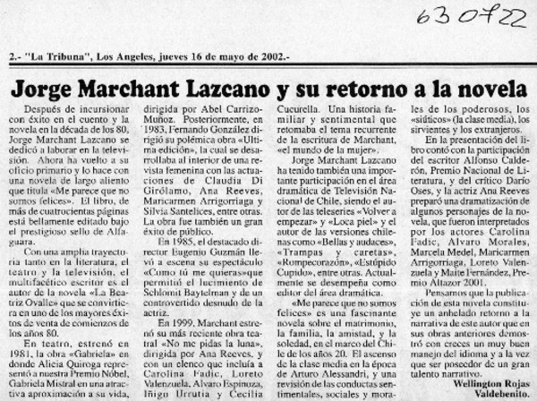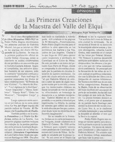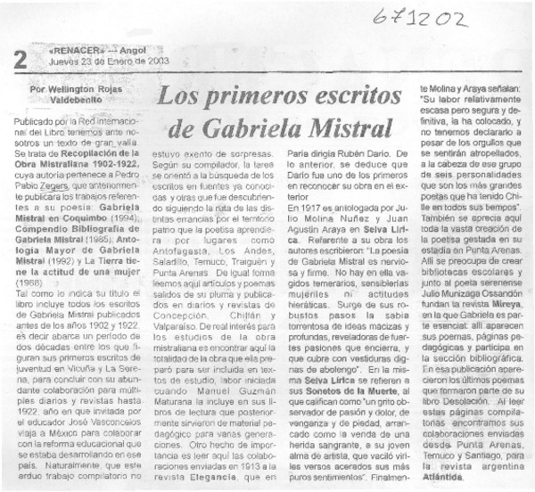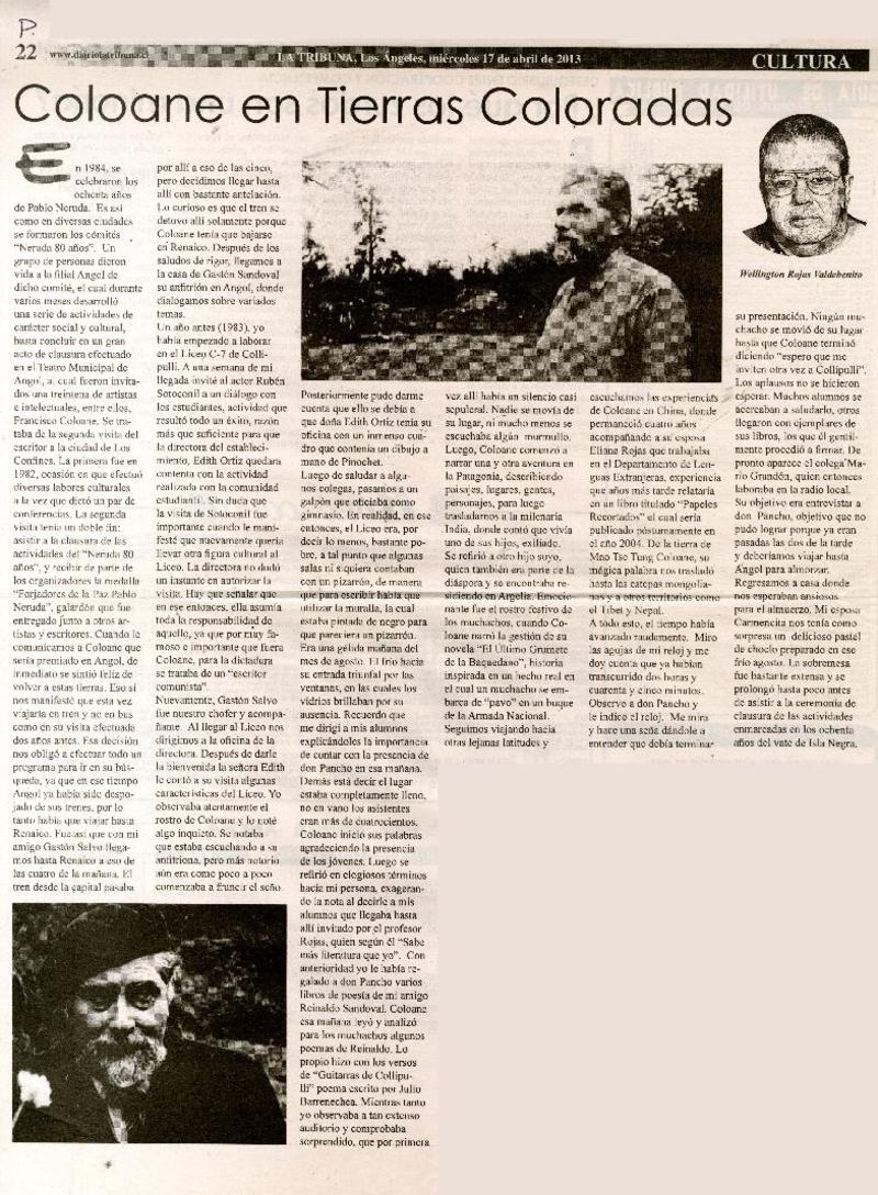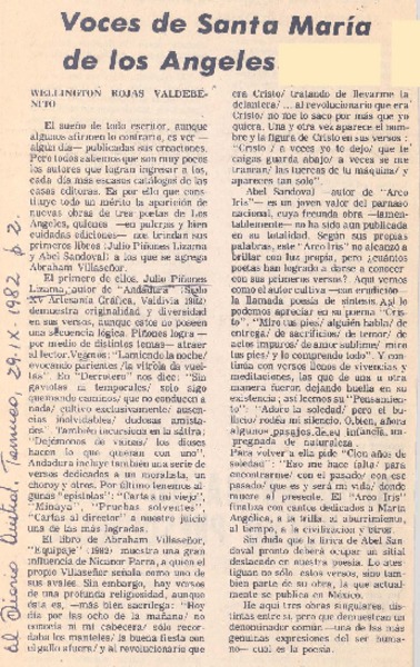 Voces de Santa María de los Angeles [artículo] Wellington Rojas Valdebenito.