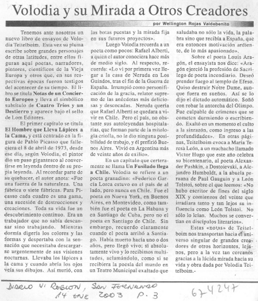 Volodia y su mirada a otros creadores. [artículo] Wellington Rojas Valdebenito.
