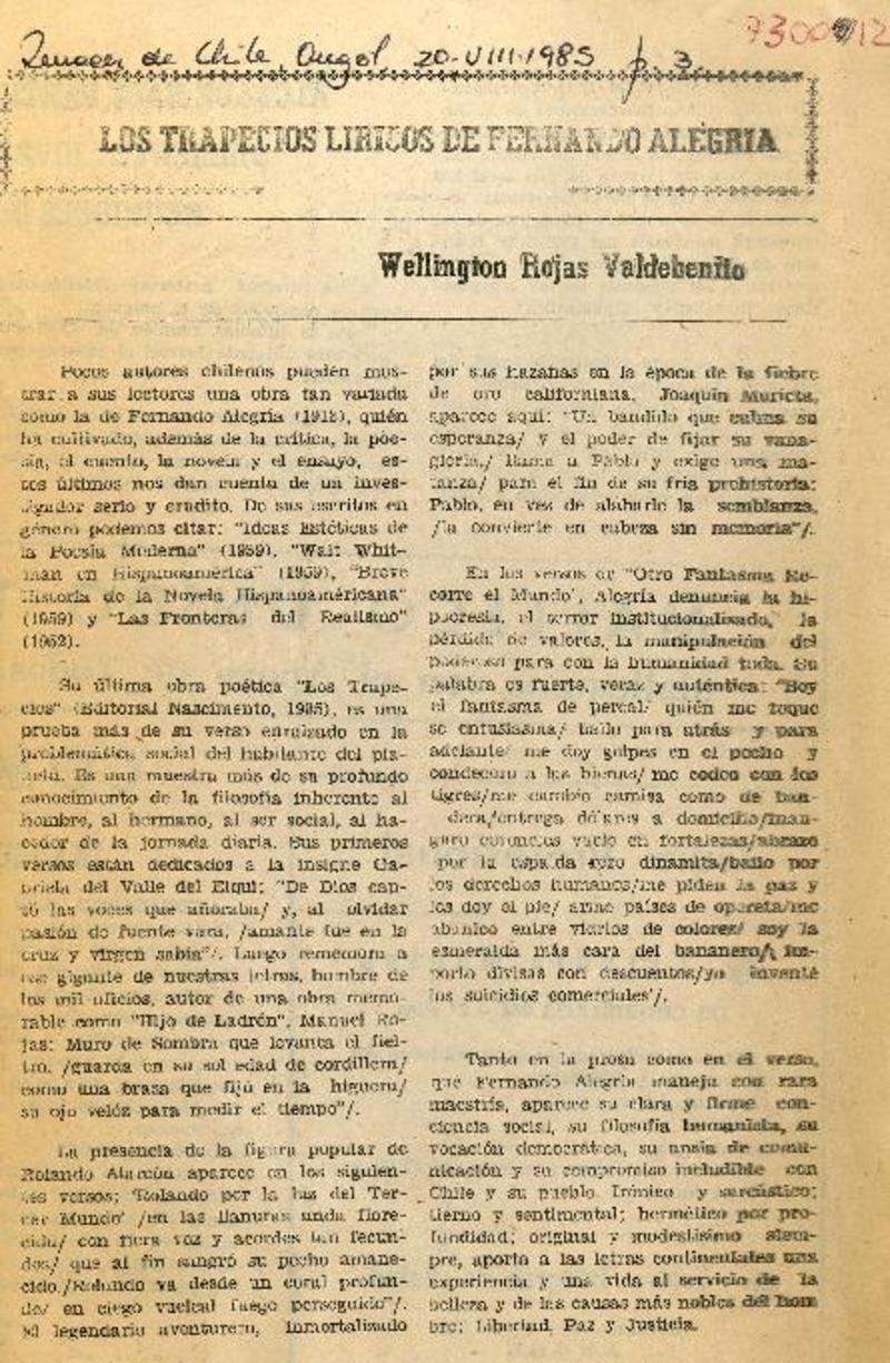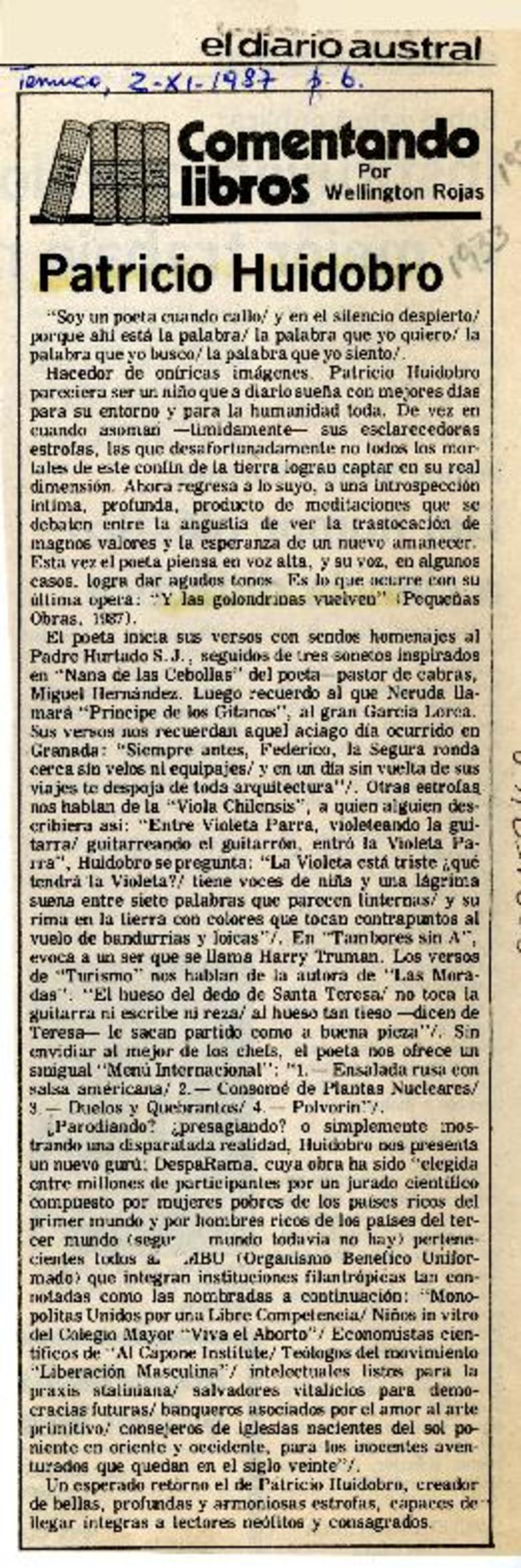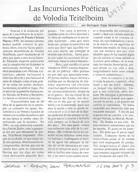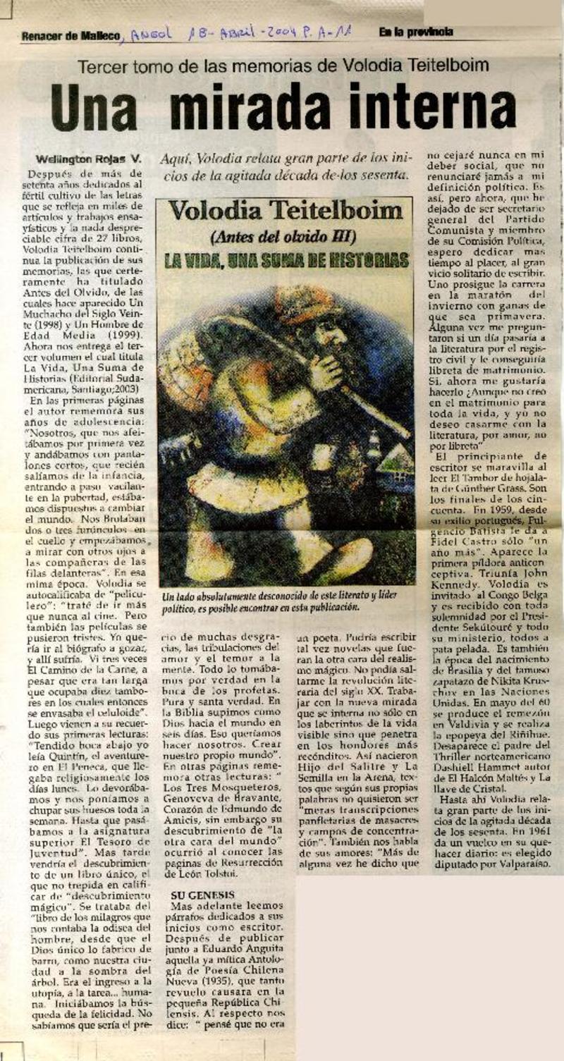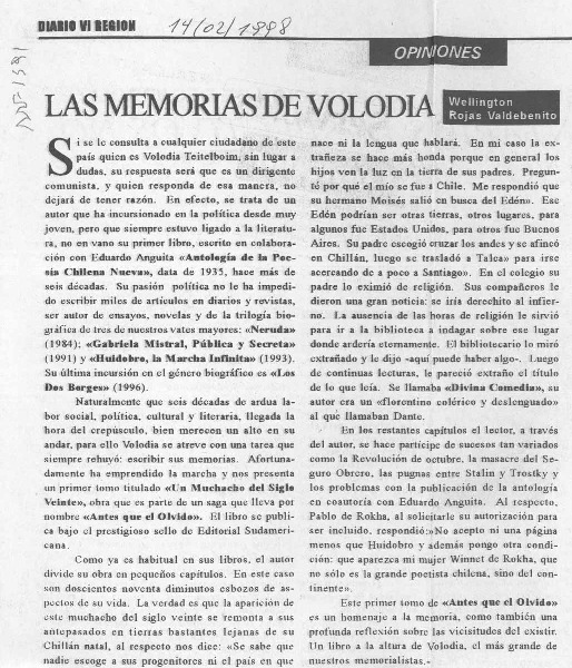 Volodia rememora partes de sus errancias [artículo] Wellington Rojas Valdebenito.