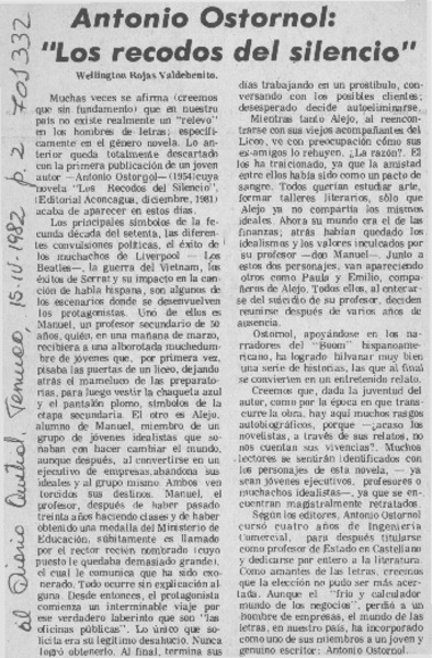 Antonio Ostornol, "Los recodos del silencio" [artículo] Wellington Rojas Valdebenito