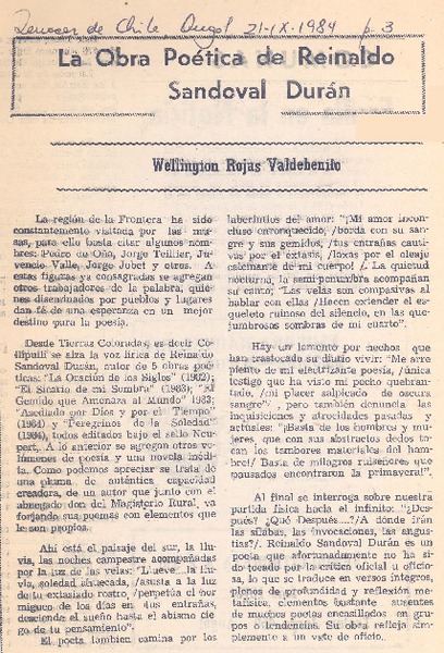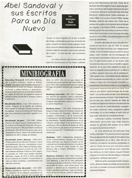 Abel Sandoval y sus escritos para un día nuevo [artículo] Wellington Rojas Valdebenito.