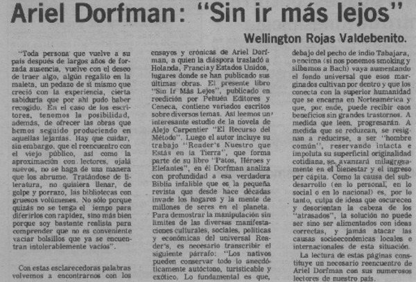 Ariel Dorfman "Sin ir más lejos" [artículo] Wellington Rojas Valdebenito.