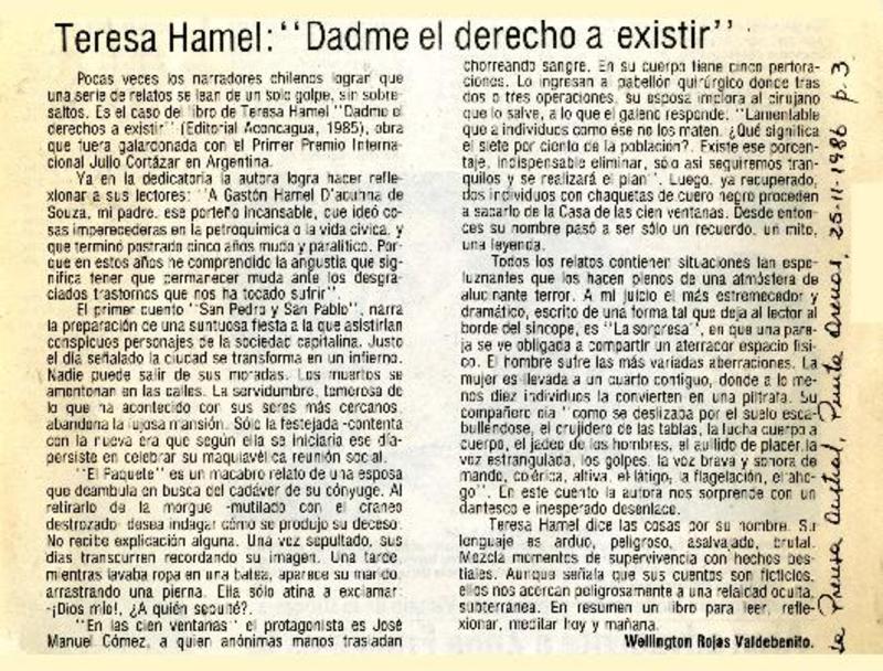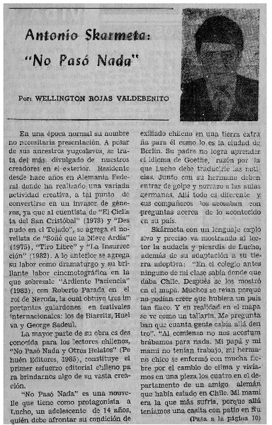Antonio Skarmeta "No pasó nada" [artículo] Wellington Rojas Valdebenito.