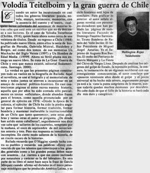 Volodia Teitelboim y la gran guerra de Chile [artículo] Wellington Rojas Valdebenito.