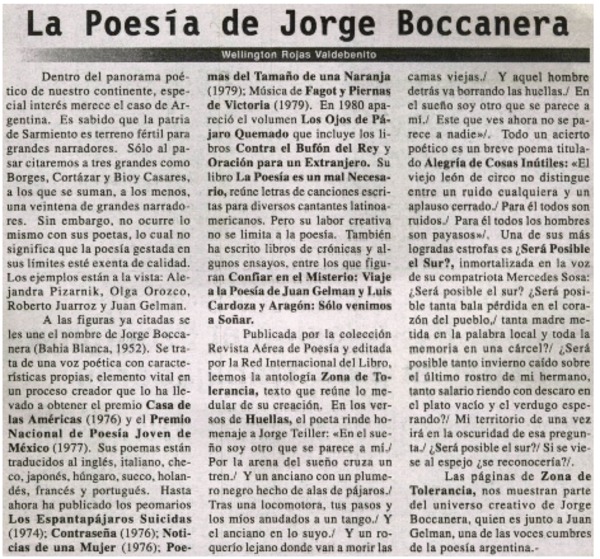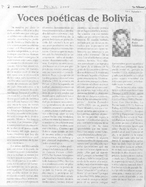 Voces poéticas de Bolivia. [artículo] W. Rojas Valdebenito