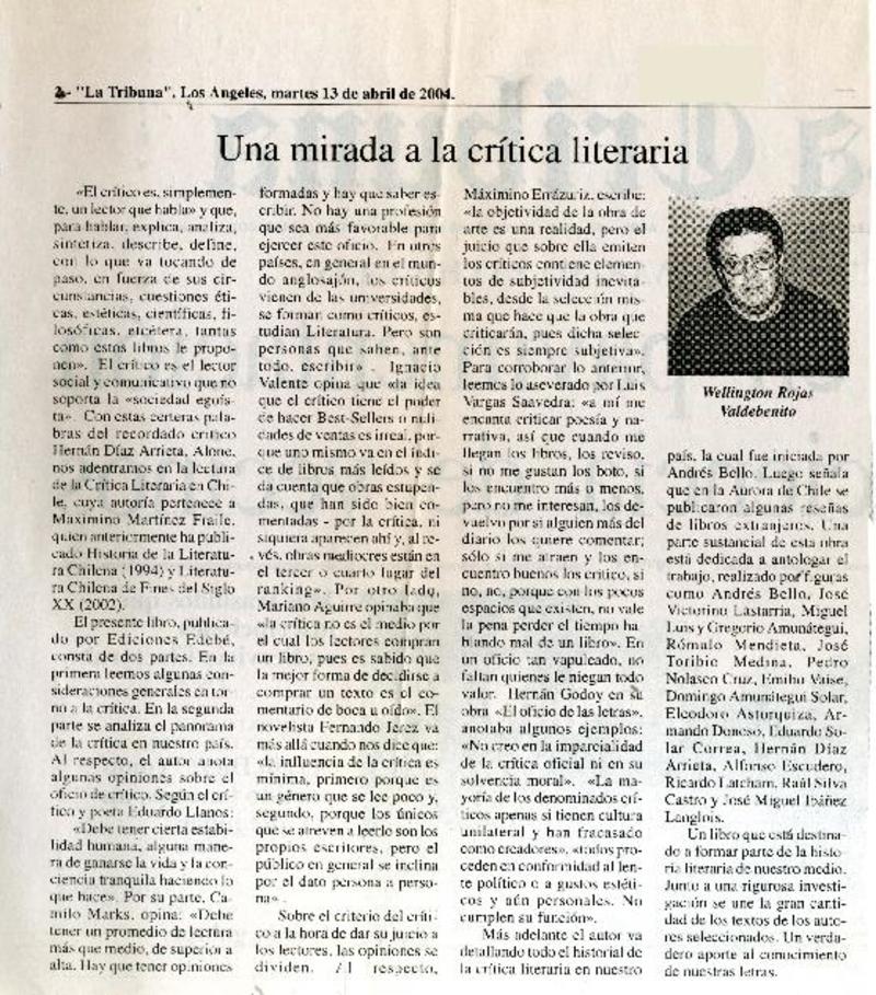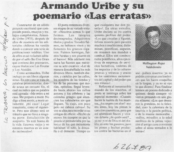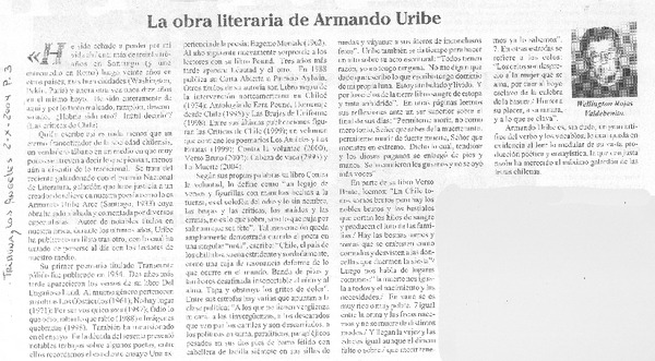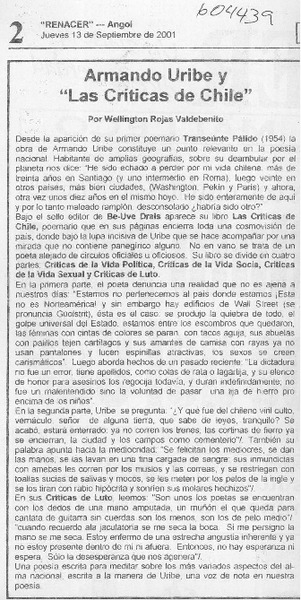Armando Uribe y "Las críticas de Chile" [artículo] Wellington Rojas Valdebenito