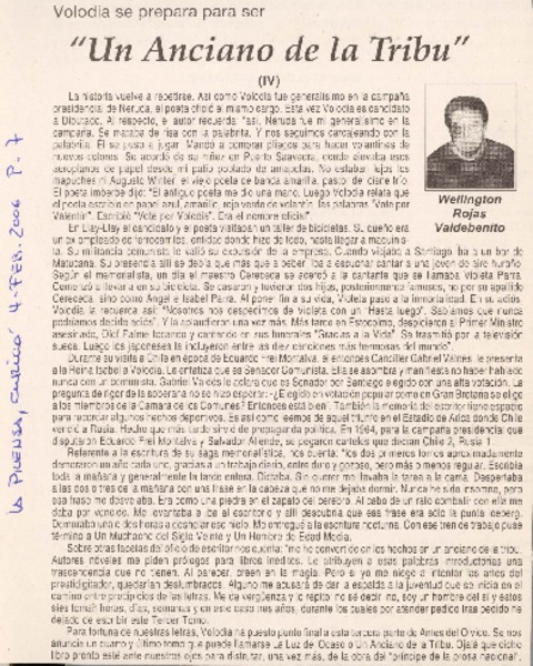 Volodia se prepara para ser "Un anciano de la tribu" [artículo] Wellington Rojas Valdebenito.