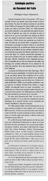 Antología poética de Rosamel del Valle [artículo] Wellington Rojas Valdebenito.