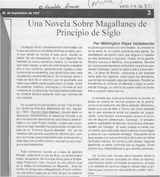 Una novela sobre Magallanes de principio de siglo [artículo] Wellington Rojas Valdebenito.