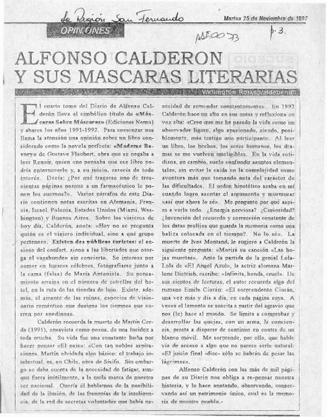 Alfonso Calderón y sus máscaras literarias [artículo] Wellignton Rojas Valdebenito.