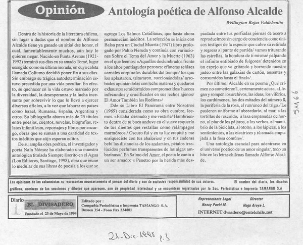 Antología poética de Alfonso Alcalde [artículo] Wellignton Rojas Valdebenito.
