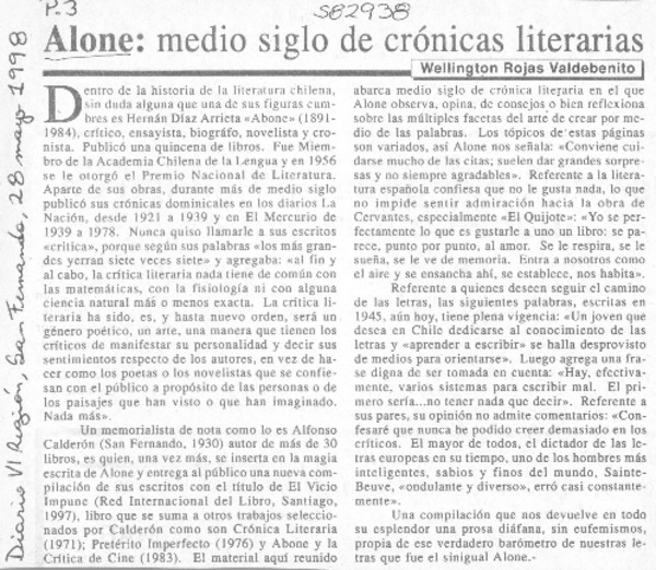 Alone, medio siglo de crónicas [artículo] Wellington Rojas Valdebenito.