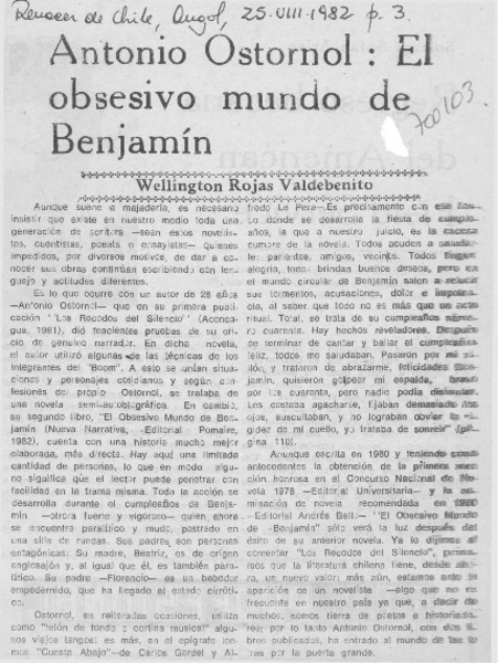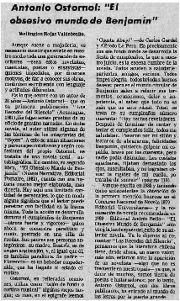 Antonio Ostornol, "El obsesivo mundo de Benjamín" [artículo] Wellington Rojas Valdebenito.