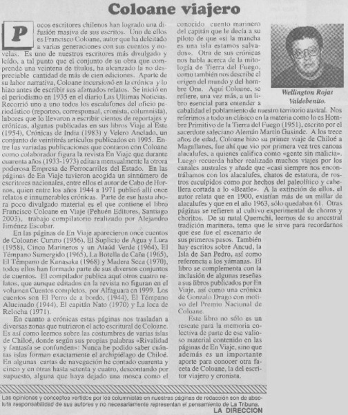Vida de un viajero: Coloane [artículo] Wellington Rojas Valdebenito.