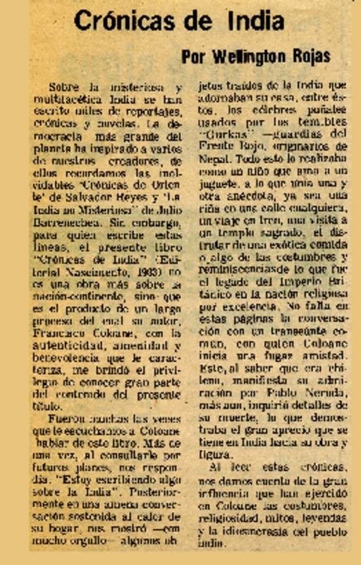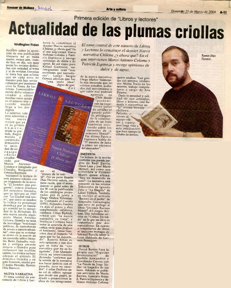 Actualidad de las plumas criollas [artículo] Wellington Rojas.