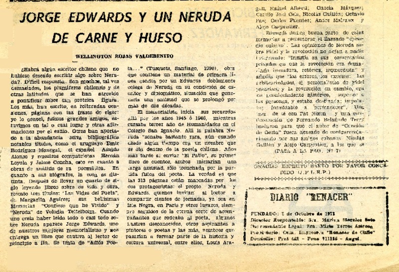 Un Neruda de carne y hueso [artículo] Wellington Rojas Valdebenito.