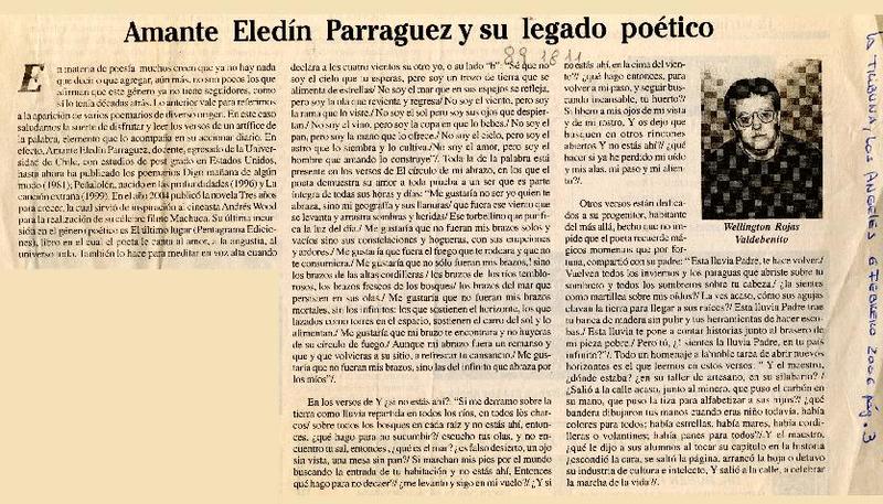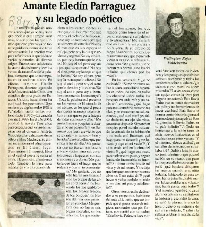 Amante Eledín Parraguez y su legado poético [artículo] Wellington Rojas Valdebenito.