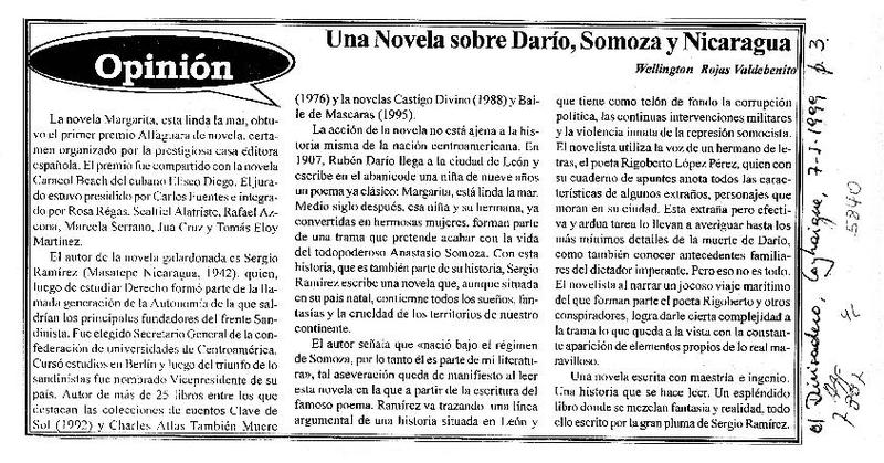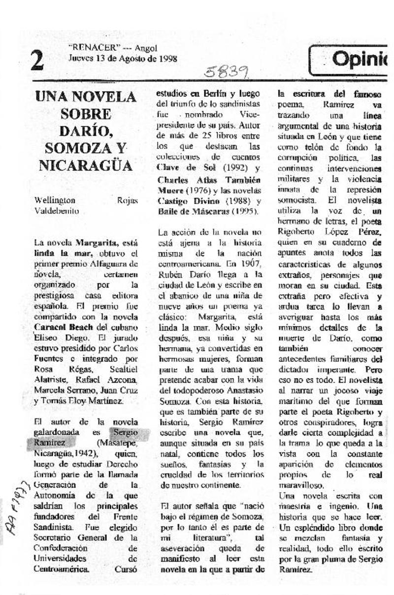 Una novela sobre Darío, Somoza y Nicaragua [artículo] Wellington Rojas Valdebenito.