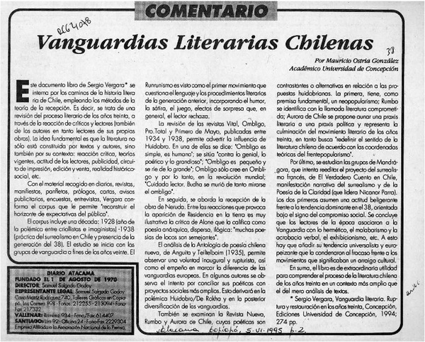 Vanguardia literaria [artículo] Mauricio Ostria González.
