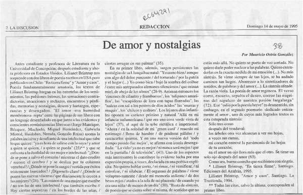 De amor y nostalgias [artículo] Mauricio Ostria González.