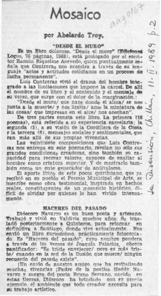 "Porque escribí estoy vivo--" [artículo] Mauricio Ostria.